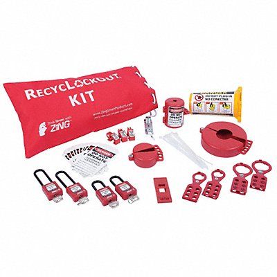 Portable Lockout Kit Filled Yes For Maximum Hand Wheel Diameter 5 in Number of Lockouts Included 8 Number of Tags Included 10 Carrying Case Type Bag For Valve Handle Type Hand Wheel Included Lockout Types Circuit Breaker Plug Valve Lockout Wall Switch Language English French Spanish Plug Lockout Type Plug Encasing Lockout Carrying Case Dimensions 6 in D x 18 in W x 10 in H Carrying Case Material Fabric