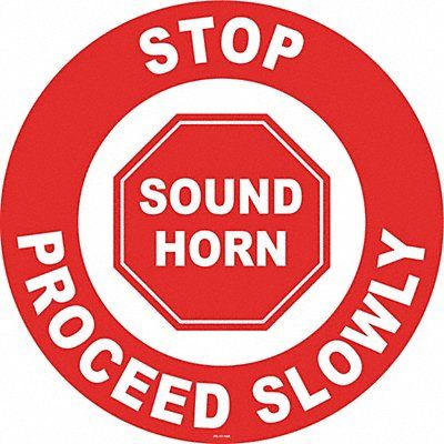 Floor Sign Circle Number of Printed Sides 1 English Sign Format Other Format Sign Legend Stop Sound Horn Sign Legend Background Color White Sign Legend Style Symbol and Text Sign Legend Character Height 1 5/8 in