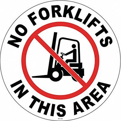Anti-Slip Floor Sign Circle Number of Printed Sides 1 English Sign Format Other Format Sign Legend No Forklfits Sign Legend Background Color White Sign Legend Style Symbol and Text Sign Legend Character Height 1 5/8 in