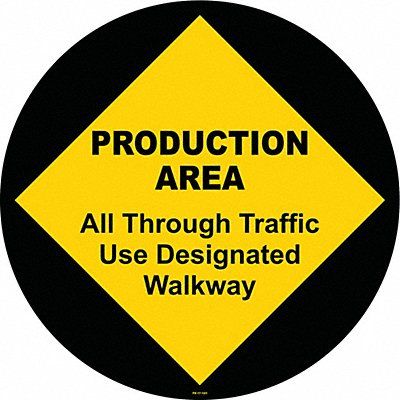 Floor Sign Circle Number of Printed Sides 1 English Sign Format Other Format Sign Legend Production Area Walkway Sign Legend Background Color Yellow Sign Legend Style Symbol and Text Sign Legend Character Height 1 in