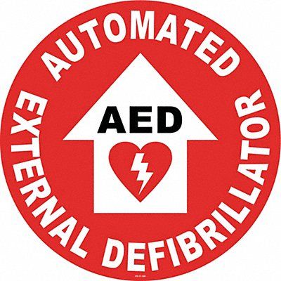 Floor Sign Circle Number of Printed Sides 1 English Sign Format Other Format Sign Legend AED Sign Legend Background Color Red Sign Legend Style Symbol and Text Sign Legend Character Height 1 5/8 in