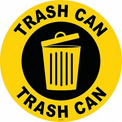 Floor Sign Circle Number of Printed Sides 1 English Sign Format Other Format Sign Legend Trash Can Sign Legend Background Color Yellow Sign Legend Style Symbol and Text Sign Legend Character Height 1 5/8 in