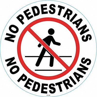 Anti-Slip Floor Sign Circle Number of Printed Sides 1 English Sign Format Other Format Sign Legend No Pedestrians Sign Legend Background Color White Sign Legend Style Symbol and Text Sign Legend Character Height 1 5/8 in
