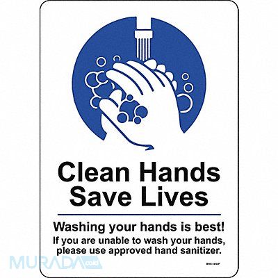 Hygiene Sign Sign Subject Matter Wash Hands Height 14 in Width 10 in Sign Material Polystyrene Sign Mounting Style With Mounting Holes Header No Header Legend Clean Hands Save Lives Washing Your Hands Is Best! If You Are Unable to Wash Your Hands Please Use Approved Hand Sanitizer. Printed Language English Sign Shape Rectangle