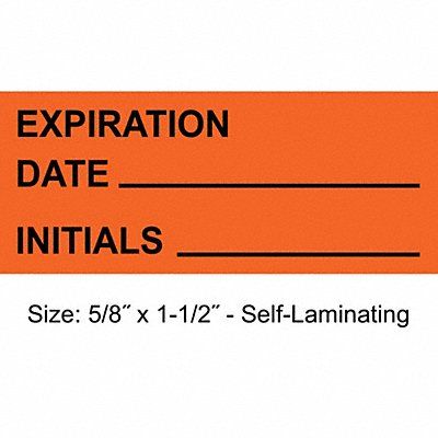 Inspection Label Adhesive Adhesive Adhesive Material Acrylic Adhesive Type Permanent Adhesive Label Color Orange Label Diameter Not Applicable Label Height 5/8 in Label Material Polyester Label Width 1 1/2 in Language English Number of Labels 350 Preprinted Images Not Applicable Preprinted Text Date Expiration Initials Product Type Inventory Control Label Write on Surface Yes Package Quantity 350