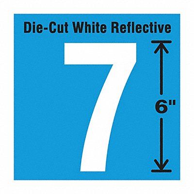 Reflective Number Label Adhesive Type Permanent Adhesive Application General Identification APWA Compliant Color No Background Color Not Applicable Character Color White Character Color Gradient Solid Color Character Height 6 in Character Outline Color Not Applicable Character Type Numbers Characters Included 7 Die Cut Yes Embossed No Font Gothic Includes (5) Pack Indoor/Outdoor Usage Indoor/Outdoor Letter Casing Uppercase Material Vinyl Meets USCG Registration Guidelines No