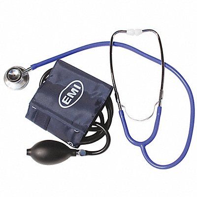 Aneroid Sphygmomanometer Arm Cuff Size 9 in to 13 in Patient Type Adult Child Infant Large Adult Cuff Material Nylon Color Blue Length 12 in Width 10 in Height 4 in Weight 0.75 lb Includes Manometer Cuff Artery Label and Gauge Holder Markings Latex Inflation Bladder and Bulb Chrome Plated Air Deflation Valve Leatherette Zippered Carrying Case and Instruction Manual EMIs Dual Head Stethoscope