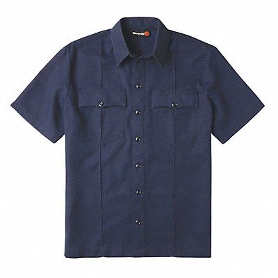 ATPV Rating 7.1 cal/sq cm Arc Flash PPE Category 2 Collar Style Lay-Flat Color Navy Fabric Weight 5.8 oz Features Pencil Slot on Left Chest Pocket Sewn-in Military Creases in Front and Back Straight Hem with 3 in Slits at Side Seams Closure Type Snap Gender Men s Flame-Resistant Untucked Uniform Shirt Material Trade Name 16 Percent Aramid 37 Percent Lyocell 47 Percent Modacrylic Maximum Chest Size 43 in Neck Style Collar Number of Pockets 2 Pocket Location Left Chest Size M