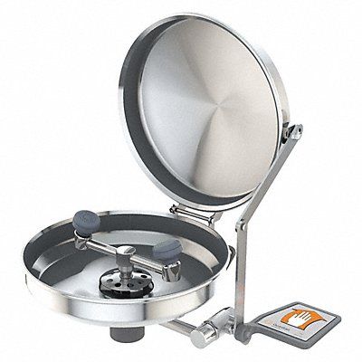 Plumbed Eyewash Activation Push Plate Barrier Free No Bowl Style Covered Color Silver Coverage Eyes Depth 13 3/4 in Height 9 in Width 15 5/8 in Environment General Purpose Eyewash Bowl Material Stainless Steel Hazardous Location Rating Not Rated Includes Hi-Visibility Identification Sign Inspection Tag Stainless Steel Hinged Dust Cover Includes Drench Hose No Includes Foot Pedal No Inlet Pipe Gender Female Inlet Pipe Size 1/2 in Inlet Pipe Thread Type NPT
