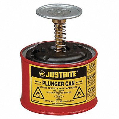 Plunger Can Can Capacity 0.125 gal Can Material Galvanized Steel Dasher Plate Dia 2 3/4 in Can Color Red Plunger Material Brass Ryton Height 5 1/4 in Finish Powder Coated Outside Dia 4 7/8 in Standards FM Approved OSHA