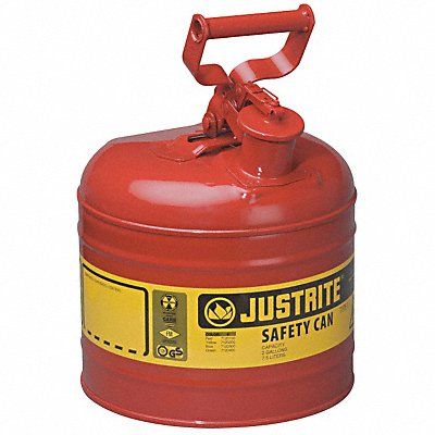 Type I Safety Can Can Capacity 2 gal Can Color Red For Use With Liquid Flammables Can Material Galvanized Steel Height 13 3/4 in Outside Dia 11 3/4 in DOT Approved No Includes Hose No Length 12 5/8 in Width 9 3/8 in
