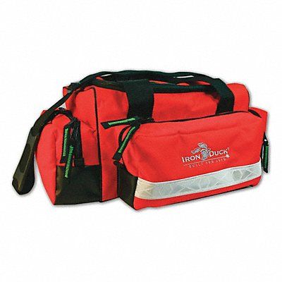 Trauma Bag Height 8 1/2 in Width 14 1/2 in Length 19 in Material Nylon Orange Closure Type Zipper Features On Top Lip You Will Find A Flat Zippered Up Pocket with Elastic Tool Holders Removable Nylon Liner with Padded Dividers (2) Side Pockets Front Pocket