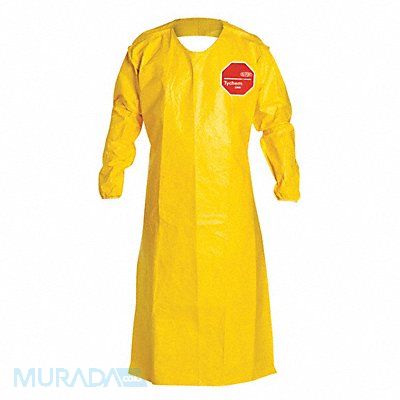 Chemical Resistant Sleeve Apron Color Yellow Cuff Style Elastic FDA Compliant No Material Polyethylene Coated High Density Polyethylene Material Weight 2.5 oz/sq yd Overall Length 49 3/4 in Overall Width 28 1/2 in Package Quantity 25 Packaging Bulk Seam Style Bound Series Tychem(R) 2000 Size Universal Sleeve Length 21 1/2 in Thickness 10 mil Pathogen Chemical Ratings Meets ASTM F1670 Meets ASTM F1671 Waist Closure Tie Anti-Static No Back Style Open-Back
