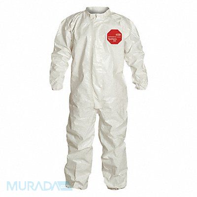 Collared Chemical Resistant Coveralls Level of Protection Liquid Tight Coverall Style Collared Coverall Disposable Clothing Size 5XL Disposable Clothing Primary Material Tychem(R) 4000 Series Tychem(R) 4000 Ankle Style Elastic Cuff Styles Elastic Seam Style Taped White Closure Type Zipper Standards ASTM D1777 D3776 D3786 D5034 Inseam 33 in Fits Chest Size 53 3/4 in to 57 1/4 in Fits Waist Size 53 3/4 in to 57 1/4 in Package Quantity 6