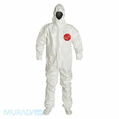 Hooded Chemical Resistant Coveralls Level of Protection Liquid Tight Coverall Style Hooded Coverall Disposable Clothing Size M Disposable Clothing Primary Material Tychem(R) 4000 Series Tychem(R) 4000 Ankle Style Attached Socks Cuff Styles Elastic Seam Style Taped White Closure Type Zipper Standards ASTM D1777 D3776 D3786 D5034 Inseam 28 1/2 in Fits Chest Size 36 1/4 in to 39 3/4 in Fits Waist Size 35 1/4 in to 38 3/4 in Package Quantity 6