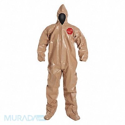 Hooded Chemical Resistant Coveralls Level of Protection Liquid Tight Coverall Style Hooded Coverall Disposable Clothing Size M Disposable Clothing Primary Material Tychem(R) 5000 Series Tychem(R) 5000 Ankle Style With Attached Socks Cuff Styles Elastic Seam Style Taped Tan Closure Type Adhesive Standards ASTM D1777 ASTM D3776 ASTM D5587 ASTM D5034 Inseam 28 in Fits Chest Size 34-3/4 in to 38-1/4 in Fits Waist Size 47 in Package Quantity 6