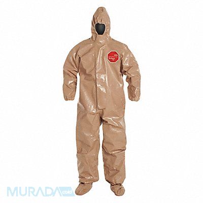Hooded Chemical Resistant Coveralls Level of Protection Liquid Tight Coverall Style Hooded Coverall Disposable Clothing Size M Disposable Clothing Primary Material Tychem(R) 5000 Series Tychem(R) 5000 Ankle Style Elastic Cuff Styles Elastic Seam Style Taped Tan Closure Type Adhesive Standards ASTM D1777 ASTM D3776 ASTM D5587 ASTM D5034 16 CFR 1610 Inseam 28 in Fits Chest Size 34-3/4 in to 38-1/4 in Fits Waist Size 47 in Package Quantity 6