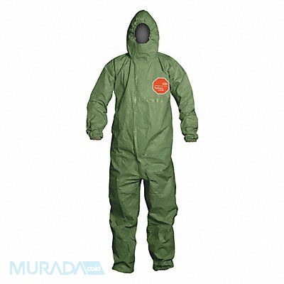 J6007 Hooded Chemical Resistant Coveralls Level of Protection Secondary Flame Resistant Coverall Style Hooded Coverall Disposable Clothing Size 7XL Series Tychem(R) 2000 SFR Ankle Style Elastic Cuff Styles Elastic Seam Style Taped Green Closure Type Zipper Standards NFPA 2113 Inseam 35 in Fits Chest Size 66 2/7 in to 69 7/9 in Package Quantity 4