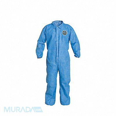 H3333 Collared Disposable Coveralls Level of Protection Dry Particulate Coverall Style Collared Coverall Disposable Clothing Size L Disposable Clothing Primary Material SMS Series ProShield(R) 10 Ankle Style Elastic Cuff Styles Elastic Seam Style Serged Blue Closure Type Zipper Inseam 37 1/4 in Fits Chest Size 37 1/4 in to 40 3/4 in Package Quantity 25