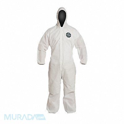 H3337 Hooded Disposable Coveralls Level of Protection Dry Particulate Coverall Style Hooded Coverall Disposable Clothing Size 3XL Disposable Clothing Primary Material SMS Series ProShield(R) 10 Ankle Style Elastic Cuff Styles Elastic Seam Style Serged White Closure Type Zipper Inseam 28 3/4 in Fits Chest Size 47 3/4 in to 51 1/4 in Package Quantity 25
