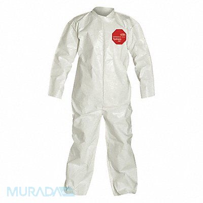 Coveralls Level of Protection Liquid Tight Coverall Style Collared Coverall Disposable Clothing Size 2XL Disposable Clothing Primary Material Tychem(R) 4000 Series Tychem(R) 4000 Ankle Style Open Cuff Styles Open Seam Style Bound White Closure Type Zipper Standards ASTM D1777 D3776 D3786 D5034 Inseam 30 1/2 in Fits Chest Size 44 1/4 in to 47 3/4 in Package Quantity 12
