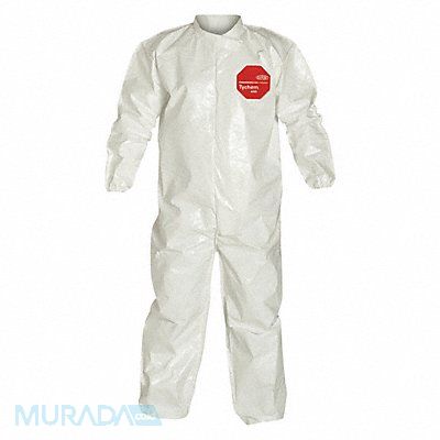 Coveralls Level of Protection Liquid Tight Coverall Style Collared Coverall Disposable Clothing Size 3XL Disposable Clothing Primary Material Tychem(R) 4000 Series Tychem(R) 4000 Ankle Style Elastic Cuff Styles Elastic Seam Style Bound White Closure Type Zipper Standards ASTM D1777 D3776 D3786 D5034 Inseam 31 in Fits Chest Size 47 1/4 in to 50 3/4 in Package Quantity 12