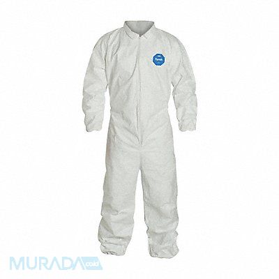 Collared Disposable Coveralls Level of Protection Reduced Spray Coverall Style Collared Coverall Disposable Clothing Size 6XL Disposable Clothing Primary Material Tyvek(R) 400 Series Tyvek(R) 400 Ankle Style Elastic Cuff Styles Elastic Seam Style Serged White Closure Type Zipper Standards USDA FDA OSHA Inseam 34 1/2 in Fits Chest Size 59 1/4 in to 62 3/4 in Package Quantity 25