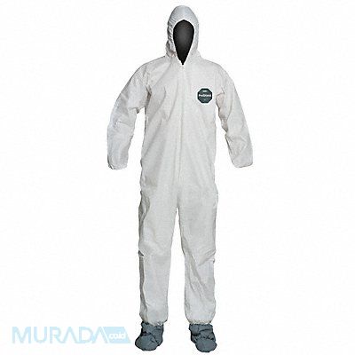 Hooded Disposable Coveralls Level of Protection Dry Particulate Reduced Spray Coverall Style Hooded Coverall Disposable Clothing Size 3XL Disposable Clothing Primary Material Microporous Film Laminate Series ProShield(R) 50 Ankle Style Elastic Cuff Styles Elastic Seam Style Serged White Closure Type Zipper Inseam 28 3/4 in Fits Chest Size 47 3/4 in to 51 1/4 in Package Quantity 25