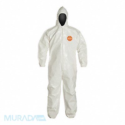 D2257 Hooded Chemical Resistant Coveralls Level of Protection Liquid Tight Coverall Style Hooded Coverall Disposable Clothing Size L Disposable Clothing Primary Material Tychem(R) 4000 Series Tychem(R) 4000 Ankle Style Elastic Cuff Styles Elastic Seam Style Bound White Closure Type Zipper Standards ASTM D1777 D3776 D3786 D5034 Inseam 28 1/2 in Fits Chest Size 38 1/4 in to 41 3/4 in Fits Waist Size 50 in Package Quantity 12