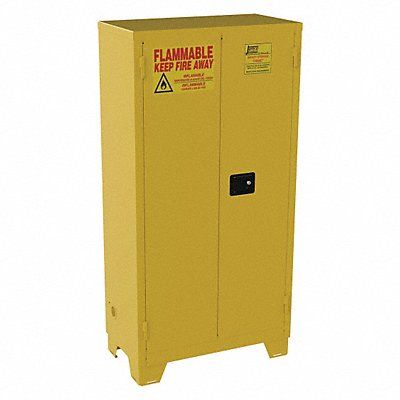 Flammable Cabinet Safety Cabinet Type Standard with Legs Capacity 44 gal Height 70 in Width 34 in Depth 18 in Safety Cabinet Door Type Self-Closing Number of Cabinet Shelves 3 Color Yellow Number of Doors 2