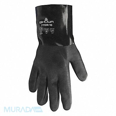 Chemical Resistant Gloves PVC Fully 18 mil 10 in Cuff Gauntlet Lining Jersey Glove Size L Color Black Supported Standards CE Rated EN 388 2016 3111X EN ISO 374-1 2016/Type B AKLMP EN 374-2 2003 Resists Abrasion Acids Alcohols Animal Fats Caustics Detergents and Petroleum Based Solvents Salts 1 Pair