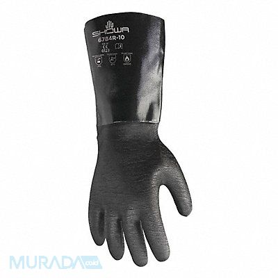H0560 Chemical Resistant Gloves Neoprene Fully 26 mil 14 in Cuff Gauntlet Lining Flannel Glove Size 10 Color Black Supported Standards Cat. III 0321 EN 388 2016 3111X EN ISO 374-1 2016/Type A AJKLMT EN ISO 374-5 2016 VIRUS Resists Abrasion Acids Caustics Greases Many Solvents Oils Puncture 1 Pair