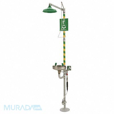 Shower with Eyewash Barrier Free No Bowl Style Uncovered Coverage Eyes Eyewash Bowl Material Stainless Steel Hazardous Location Rating Not Rated Includes AXION(R) MSR Hydrodynamic Showerhead Inspection Tag Powder-Coated Cast Iron 9 in Diameter Floor Flange Self-Adhesive High Visibility Safety Green and Bright Yellow Stripes Universal Sign Includes Foot Pedal No Includes Showerhead Shroud Yes Inlet Connection Location Top Inlet Pipe Gender Female Inlet Pipe Size 1 1/4 in