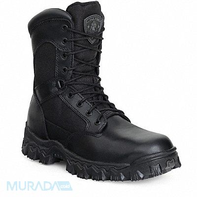 Work Boot Toe Type Composite Metatarsal Guard No Insulated No Men s Size 12 Footwear Width Wide Waterproof Yes Front Lace and Side Zipper Height 9 in Black Liner Material Textile Shank Material Rubber Midsole Material EVA Polyurethane Outsole Material Rubber Footwear Sole Pattern Cleated 1 Pair