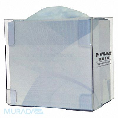 Face Mask Dispenser Capacity (1) Box of Tie Style Face Masks Dispenser Style Tray Dimensions 7 5/8 in H x 8 1/8 in W x 5 5/8 in D Dispensing Method Open Top and Bottom Tray PETG Plastic