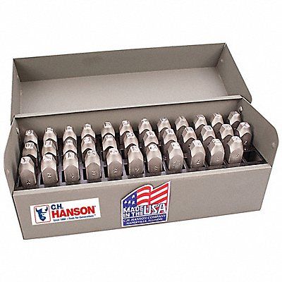Steel Stamps Set Character Height 1/8 in Character Type Set Letter Set Characters Included A to Z Ampersand Duty Light For Maximum Surface Hardness Rockwell C Scale 58 to 62 For Shank Diameter 1/8 in Holder Length Not Applicable Holder Shank Size Not Applicable Holder Width Not Applicable Impression Character Style Gothic Includes (27) A to Z Ampersand Includes Holder No Letter Casing Uppercase Maximum Characters per Line Not Applicable Product Type Hand Stamp Kit