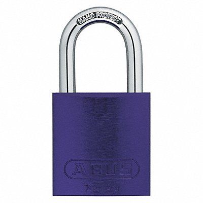 D8946 Lockout Padlock Body Color Purple Body Height 1 1/2 in Body Material Aluminum Body Thickness 11/16 in Body Width 1 1/2 in Header None/No Header Horizontal Shackle Clearance 3/4 in Key Type Keyed Alike Non-Removable Key Yes Resistance Properties Corrosion Resistant Heat Resistant Shackle Diameter 1/4 in Shackle Height 1 in Shackle Material Hardened Steel Shackle Type Open Vertical Shackle Clearance 1 1/16 in Width Across Shackle 13/16 in Body Material Coating Anodized