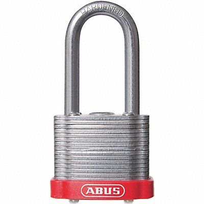 D8955 Lockout Padlock Body Color Red Body Height 1 3/8 in Body Material Steel Body Thickness 1 in Body Width 1 1/2 in Header None/No Header Key Type Keyed Different Resistance Properties Corrosion Resistant Weather Resistant Shackle Diameter 1/4 in Shackle Height 2 in Shackle Material Hardened Steel Shackle Type Open Width Across Shackle 13/16 in Body Material Coating Laminated Body Shape Rectangular Bumper Color Red Control Key Registration Required No