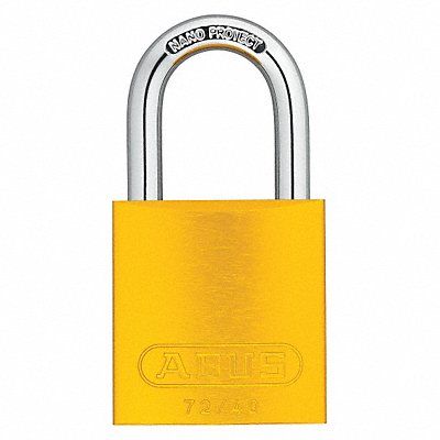 D8948 Lockout Padlock Body Color Yellow Body Height 1 1/2 in Body Material Aluminum Body Thickness 11/16 in Body Width 1 1/2 in Header None/No Header Horizontal Shackle Clearance 3/4 in Key Type Keyed Alike Non-Removable Key Yes Resistance Properties Corrosion Resistant Heat Resistant Shackle Diameter 1/4 in Shackle Height 1 in Shackle Material Hardened Steel Shackle Type Open Vertical Shackle Clearance 1 1/16 in Width Across Shackle 13/16 in Body Material Coating Anodized
