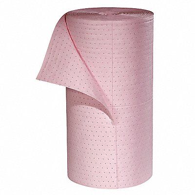 Product Type Sorbent Roll Fluids Absorbed Universal For Use With Chemical or Metal Type Universal Bases Corrosives Hazardous Chemicals Size 30 in x 300 ft Volume Absorbed Per Pad 5 120 oz Volume Absorbed per Pkg 40 gal Color/Pattern Pink Material Polypropylene Number of Layers 8-ply Perforated Yes Perforated Size 10 in x 15 in
