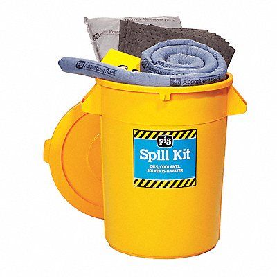 Spill Kit Fluids Absorbed Universal Volume Absorbed Per Kit 21 gal Container Type Can 32 gal Container Capacity 21 3/4 in W x 21 3/4 in L x 27.375 in H Container Size Yellow Filled Sorbents Included (25) 15 in W x 20 in L Mat Pad (4) 17 in W x 21 in L x 2 in H Pillow (4)3 in D x 10 ft L Sock Additional Components Included (5) 18 in W x 30 in H Polyethylene Disposal Bags (6) 2 in W x 6 in L Tamper Proof Seal Label 32 gal Plastic Container with Lid Instructions Lockable No