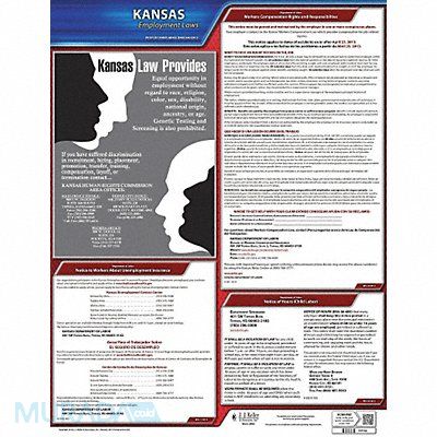 Labor Law Poster Compliance Type State Labor Law FMLA Notice Included Not Applicable Height 24 in Includes (1) State Poster Language English Material Plastic Number of Posters Included 1 Product Type Poster Subject Matter Labor Law Subscription Length Not Applicable Width 20 in State/Province KS Municipality Not Applicable Workers Compensation Notice Included Not Applicable