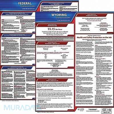 Labor Law Poster Kit Compliance Type Federal and State Labor Law FMLA Notice Included Yes Height 27 in Includes (1) State Poster (1) Federal Poster Language English Material Plastic Number of Posters Included 2 Product Type Poster Set Subject Matter Labor Law Subscription Length Not Applicable Width 19 in State/Province WY Municipality Not Applicable Workers Compensation Notice Included Not Applicable