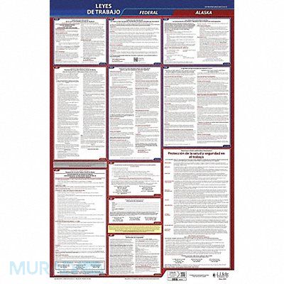 Labor Law Poster Compliance Type Federal and State Labor Law FMLA Notice Included Not Applicable Height 40 in Language Spanish Material Plastic Number of Posters Included 1 Product Type Poster Subject Matter Labor Law Subscription Length 3 yr Width 24 in State/Province AK Municipality Not Applicable Workers Compensation Notice Included Not Applicable