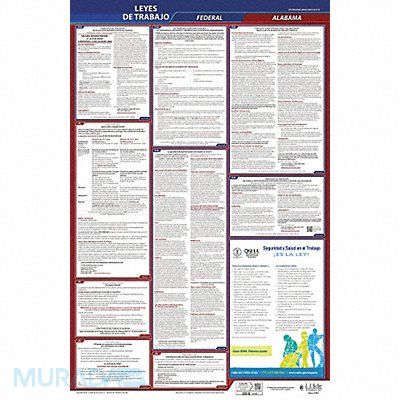 Labor Law Poster Compliance Type Federal and State Labor Law FMLA Notice Included Not Applicable Height 40 in Language Spanish Material Plastic Number of Posters Included 1 Product Type Poster Subject Matter Labor Law Subscription Length 3 yr Width 24 in State/Province AL Municipality Not Applicable Workers Compensation Notice Included Not Applicable