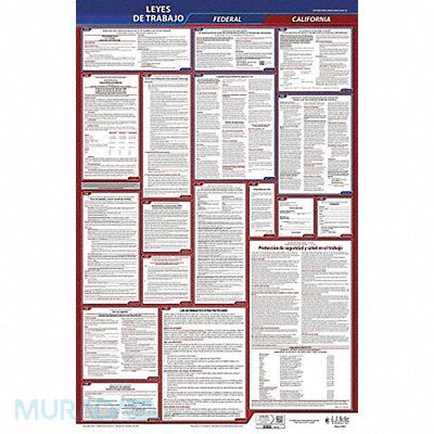 Labor Law Poster Compliance Type Federal and State Labor Law FMLA Notice Included Not Applicable Height 40 in Language Spanish Material Plastic Number of Posters Included 1 Product Type Poster Subject Matter Labor Law Subscription Length 3 yr Width 24 in State/Province CA Municipality Not Applicable Workers Compensation Notice Included Not Applicable
