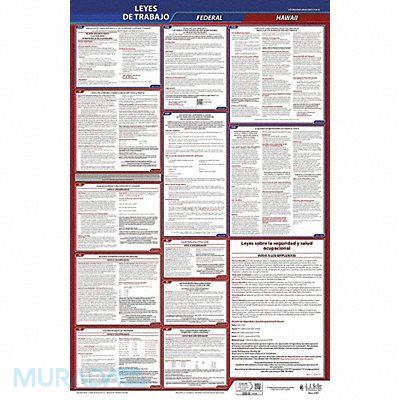 Labor Law Poster Compliance Type Federal and State Labor Law FMLA Notice Included Not Applicable Height 40 in Language Spanish Material Plastic Number of Posters Included 1 Product Type Poster Subject Matter Labor Law Subscription Length 3 yr Width 24 in State/Province HI Municipality Not Applicable Workers Compensation Notice Included Not Applicable