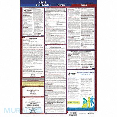 Labor Law Poster Compliance Type Federal and State Labor Law FMLA Notice Included Not Applicable Height 40 in Language Spanish Material Plastic Number of Posters Included 1 Product Type Poster Subject Matter Labor Law Subscription Length 3 yr Width 24 in State/Province ID Municipality Not Applicable Workers Compensation Notice Included Not Applicable