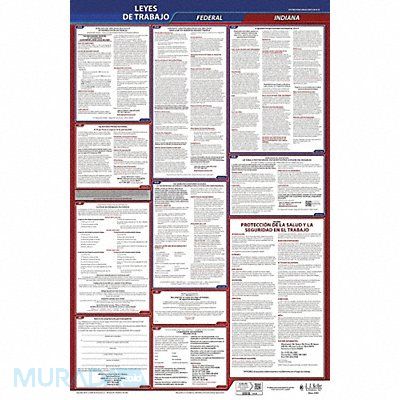 Labor Law Poster Compliance Type Federal and State Labor Law FMLA Notice Included Not Applicable Height 40 in Language Spanish Material Plastic Number of Posters Included 1 Product Type Poster Subject Matter Labor Law Subscription Length 3 yr Width 24 in State/Province IN Municipality Not Applicable Workers Compensation Notice Included Not Applicable