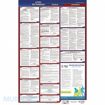 Labor Law Poster Compliance Type Federal and State Labor Law FMLA Notice Included Not Applicable Height 40 in Language Spanish Material Plastic Number of Posters Included 1 Product Type Poster Subject Matter Labor Law Subscription Length 3 yr Width 24 in State/Province LA Municipality Not Applicable Workers Compensation Notice Included Not Applicable